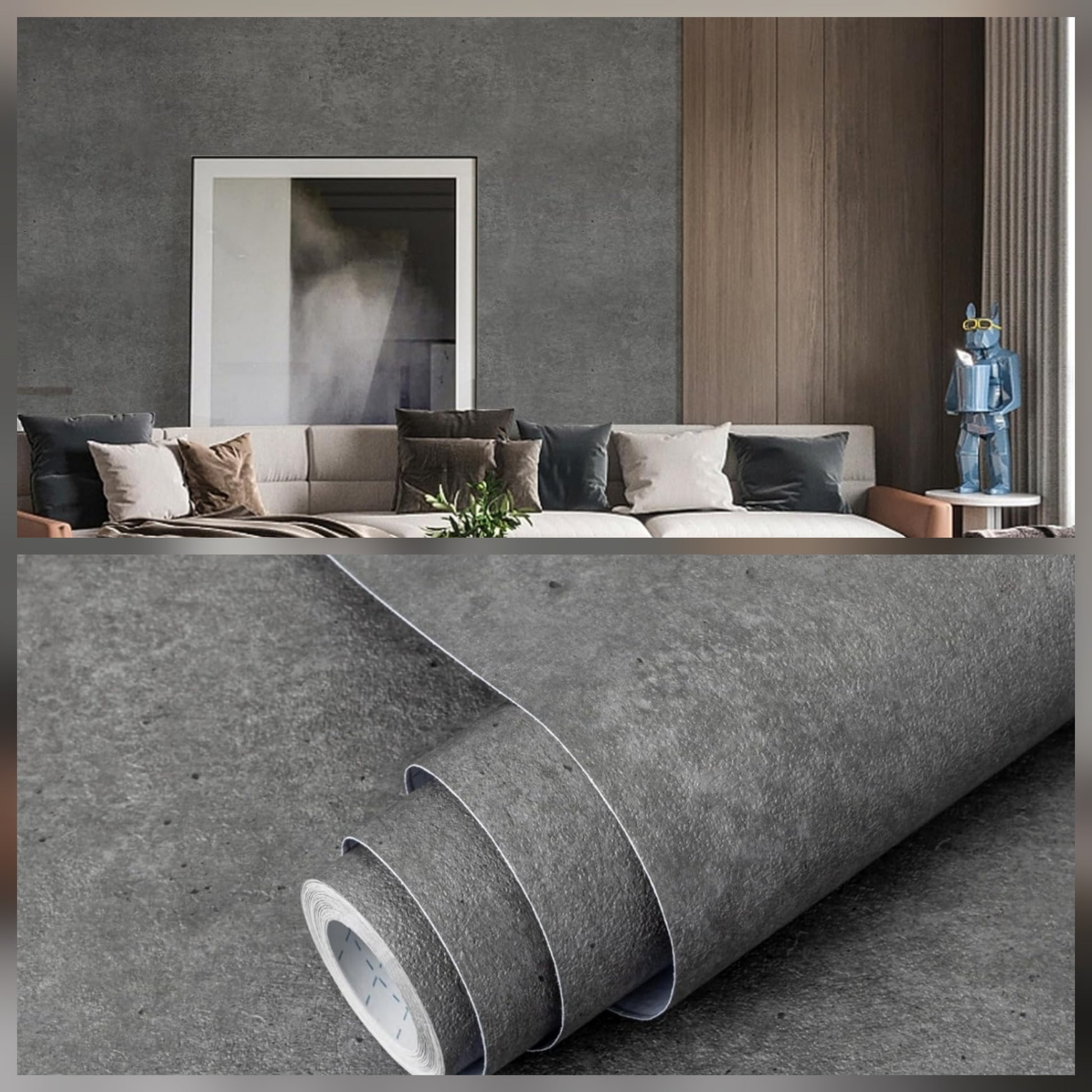 Transform your space with our premium, thick embossed wallpaper featuring a sophisticated concrete effect. Designed to bring a modern, high-end look to any room: